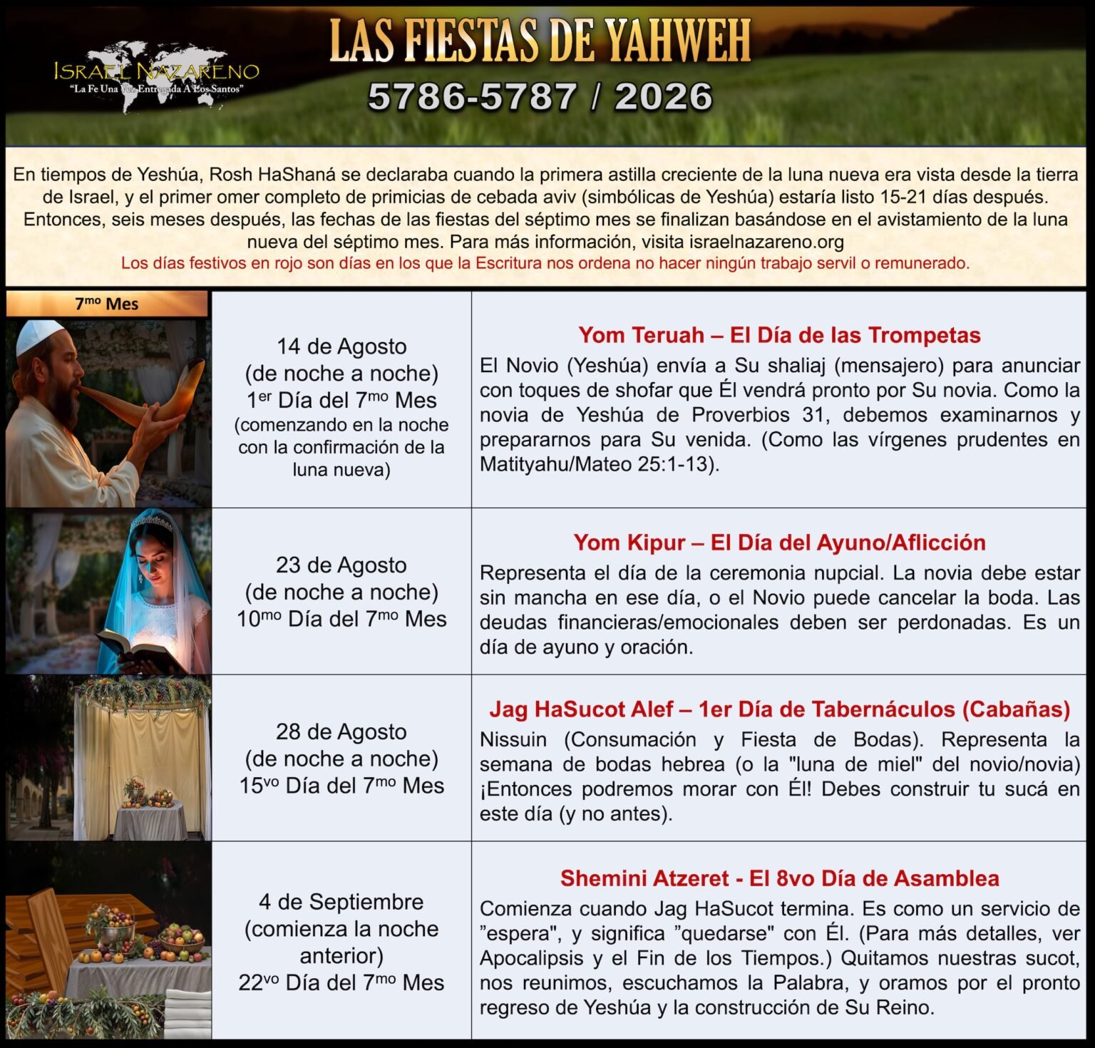 Shalom Nazarenos, Bienvenidos a las Fiestas del séptimo mes. Es importante enseñar a nuestros pequeños a participar con gozo de las Santas Convocaciones de Yahweh. Damos la bienvenida a las Fiestas del Séptimo Mes, y con…