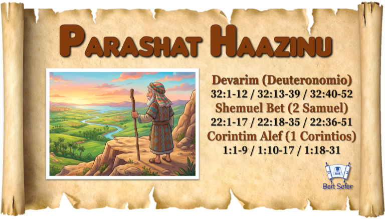 Esta semana estudiaremos la parashat Haazinu, porción del año 3, donde veremos cómo Yahweh levanta Su mano al cielo y promete justicia para Su pueblo. Aprenderemos que Su palabra es vida para nosotros y que debemos enseñarla a nuestros hijos con mucho cuidado. Leeremos la invitación de Elohim a Moisés para subir al monte Nebo. Veremos que podrá ver la tierra prometida desde lejos antes de partir. Aprenderemos que obedecer a Yahweh es lo más importante en nuestro caminar diario. En estas páginas, leeremos sobre el final de la misión de Moisés bajo Su guía y Su gran amor eterno hoy.