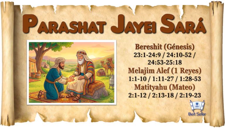 Esta semana estudiaremos la parashat Jayei Sará, porción del año 1, donde veremos el duelo de Abraham tras la muerte de Sara y cómo adquiere legalmente la cueva de Macpela como propiedad sepulcral. Aprenderemos sobre la importancia de honrar a los fallecidos mediante la compra de una tierra específica en Canaan. Leeremos cómo un Abraham anciano convoca a su siervo de confianza para asegurar el futuro de su descendencia. Veremos la seriedad de un juramento sagrado bajo el muslo para buscar una esposa adecuada para Isaac entre su propia parentela, confiando plenamente en la guía de Yahweh para cumplir Su promesa.