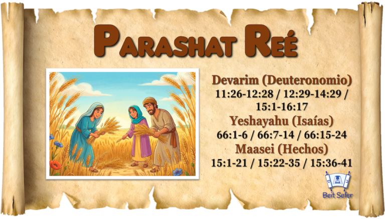 Esta semana estudiaremos la parashat Reé, porción del año 3, donde veremos la generosidad al perdonar deudas cada siete años, confiando plenamente en la bendición de Yahweh. Aprenderemos la importancia de ayudar al necesitado con un corazón alegre y sin egoísmo, y leeremos sobre las leyes que protegen a quienes sirven con lealtad. También repasaremos las tres fiestas principales del año, donde nos reuniremos ante Elohim para agradecer por las cosechas y bendiciones recibidas. En estes estudio, comprenderemos que la verdadera justicia se basa en cuidar de los demás y celebrar con gratitud la abundancia que se nos entrega con amor.