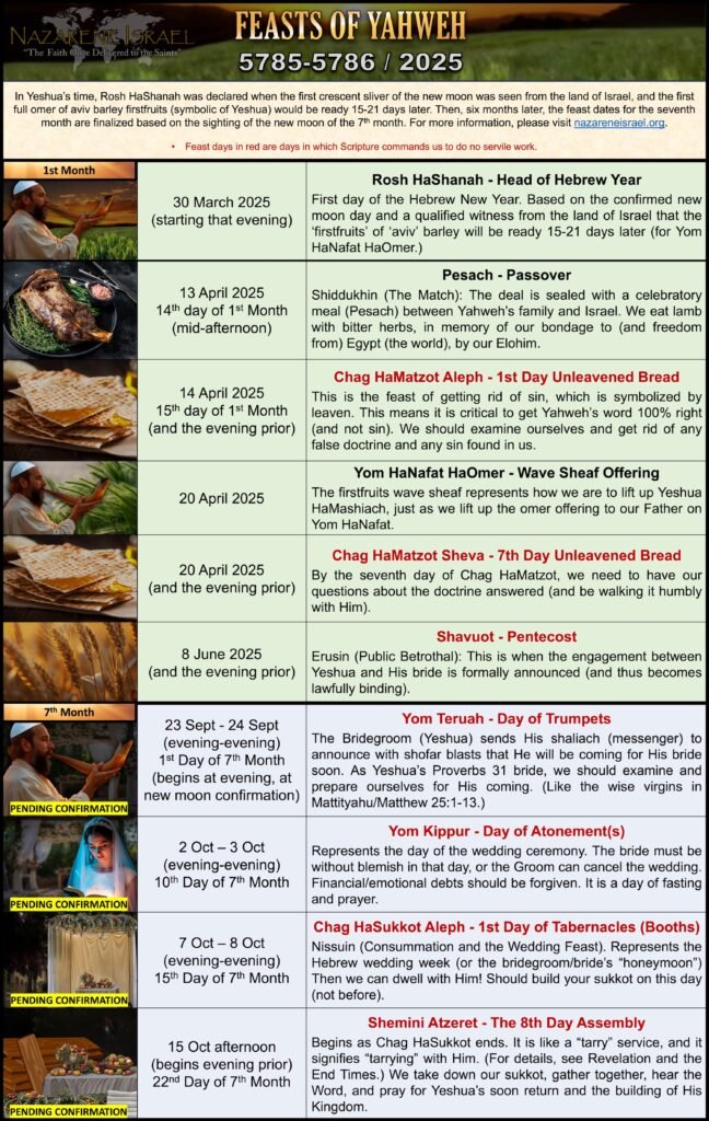 | First Month Feasts | Rosh Hashanah | 11-03-2024 | Ex.12:1-2, Num 28:11-15 | 1 Samuel 20 (all) | Colossians 2:16-17 |