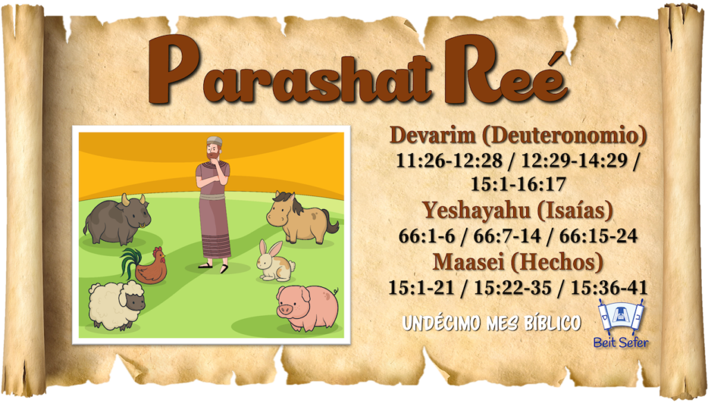 Esta semana traemos la actividad de la parashá Re’eh en ella veremos: El santuario único, advertencias contra la idolatría, animales limpios e inmundos, la ley del diezmo, el año de remisión, prestamos a los pobres, leyes sobre los esclavos, fiestas…