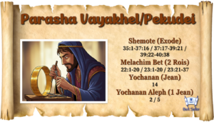 Dans la parasha Vayakhel/Pekudei, portion de l’année 3, consacrée à Yahvé, nous verrons comment les Israélites préparent avec soin les vêtements sacrés et les ustensiles du tabernacle selon les instructions de Yahvé. Nous apprendrons comment Moïse…