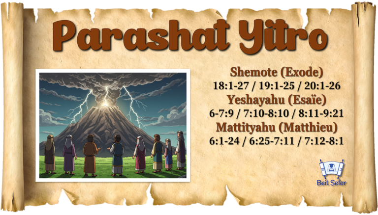 Cette semaine, nous étudierons la parashta Yitro, la portion de la troisième année, où nous verrons comment Yahweh donne les Dix Commandements, un guide clair pour vivre dans l’obéissance et le respect. Nous découvrirons l’importance d’honorer Yahweh, d’observer le sabbat et de traiter les autres avec justice et amour. Nous lirons comment le peuple, témoin de la puissance de Yahweh, est saisi de crainte, mais Moïse l’encourage à ne pas avoir peur. Nous verrons également les instructions sur la manière de s’approcher de Yahweh avec révérence, sans ornements humains ni autels élaborés.