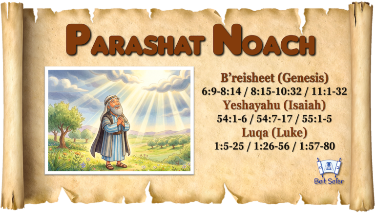 This week we will study the parashat Noach, portion of year 1, where we will see the story of Noach (Noah), a righteous man who walked faithfully with Elohim. We will learn how Yahweh decided to cleanse the earth, but He showed His great mercy by giving instructions to build an ark. We will read about the great flood that covered everything and how His protection kept the family and animals safe. We will see how the waters finally receded to reveal a new and clean land. We will learn that obeying His voice always brings salvation. We will read about how His love and His mercy protect us through every storm.