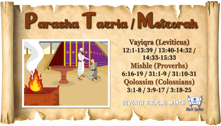 This week we will study the parasha Tazria / Metzorah, portion of year 2, we will see Yahweh’s laws for skin and disease. Elohim taught Moshe (Moses) and Aharon how to identify leprosy, a skin disease, and how affected people should separate themselves so as not to make others sick. We will also see how a priest could declare someone healthy and how that person should make an offering to Yahweh to be welcomed back into the community. We will learn about the importance of cleanliness and following Yahweh’s instructions.