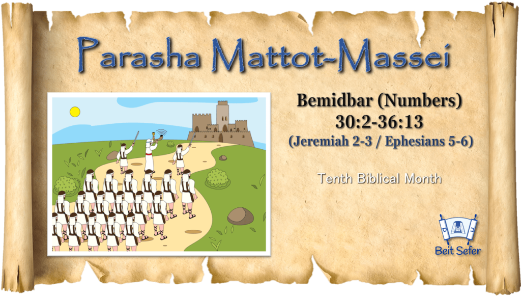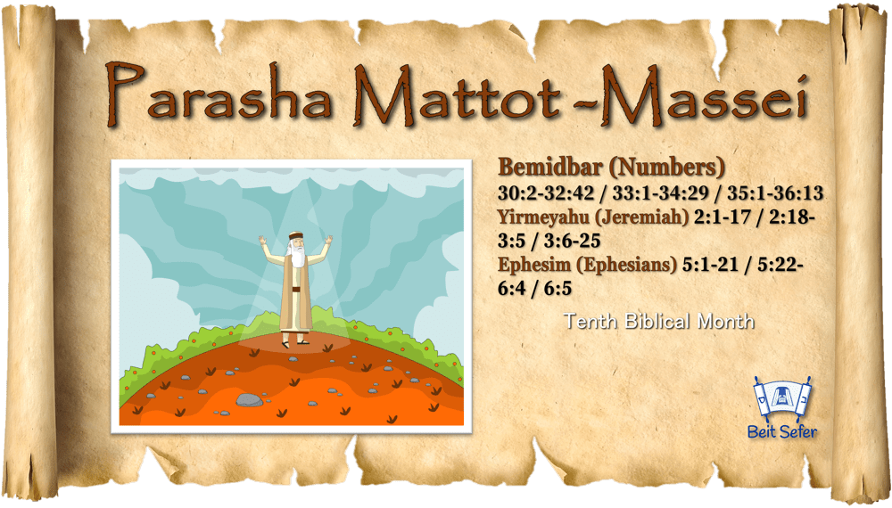This week we bring the parasha Mattoth Masei. With this portion we will finish the book of Numbers. In these chapters we read and learn about the law of the vows of daughters and wives, Reuben and Gad taking inheritance…