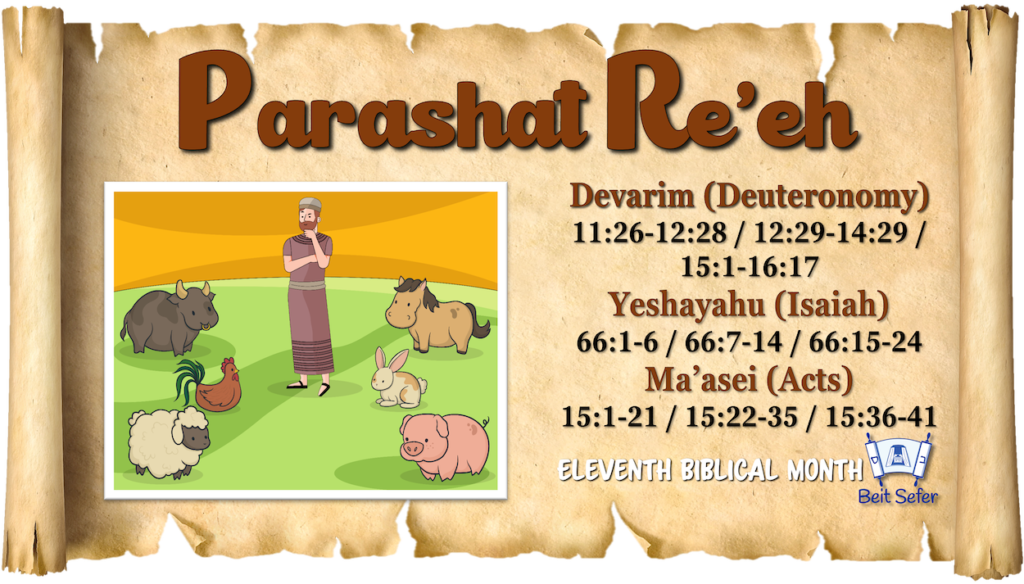 This week we bring the activity of the parasha Re’eh in it we will see: The one sanctuary, warnings against idolatry, clean and unclean animals, the law of tithing, the year of remission, loans to the poor, laws about slaves,…